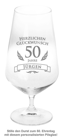• Personalisiertes Pilsglas zur 50 - Bierglas Gravur