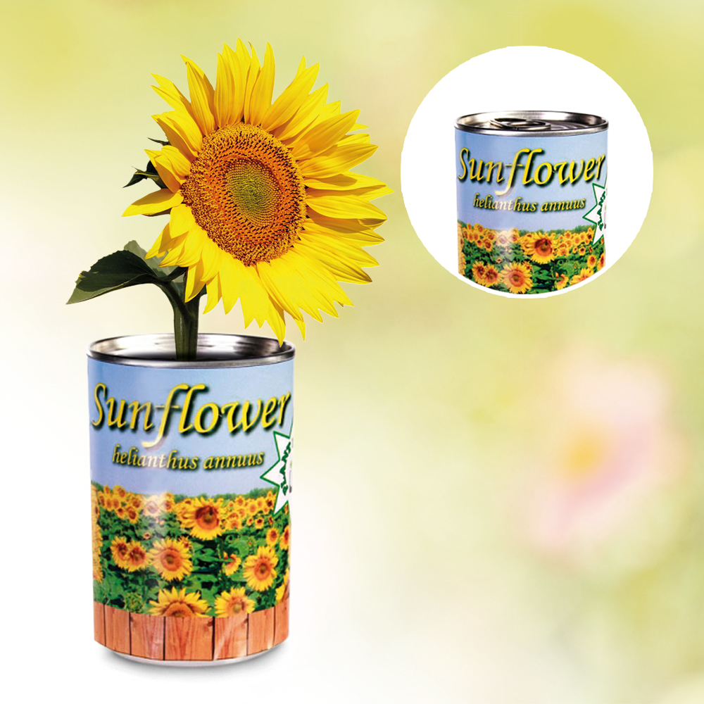 - Aus der Dose wächst nach kurzer Zeit eine Sonneblume