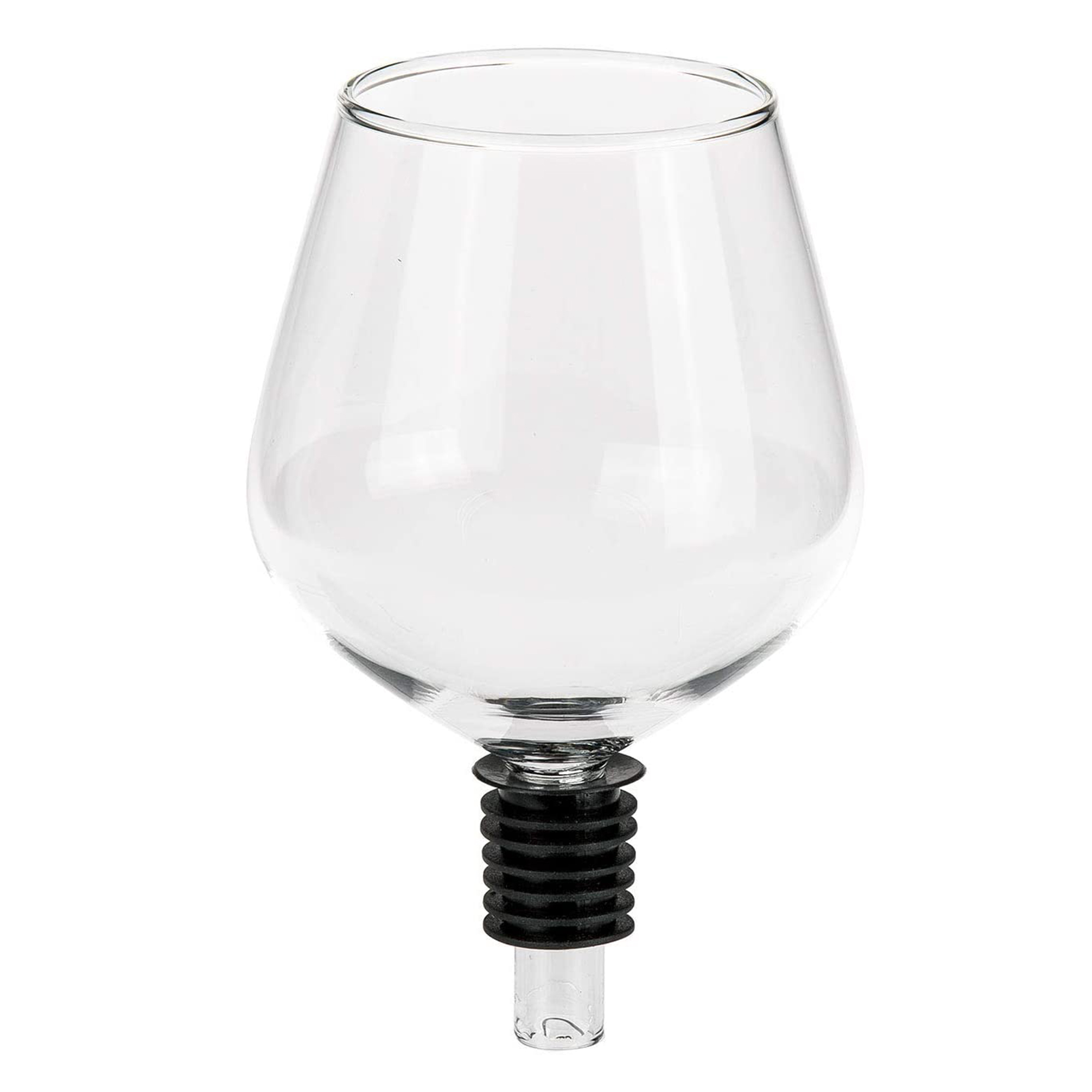 Irritierte Blicke kannst Du mit einplanen: Wie kommt das Weinglas da in den Flaschenhals?! Erst bei näherem Hinsehen wird klar, dass es sich um einen Flaschenaufsatz handelt. Gefertigt in der Optik eines handelsüblichen Weinglases. Nach dem Heraufstülpen des Aufsatzes auf den Hals kommt dank Silikondichtung natürlich nichts durch. Du kannst die Flasche also bedenkenlos und ohne Fleckenrisiko kippen. Wie gesagt, es bleibt stets bei dem einen Gläschen...