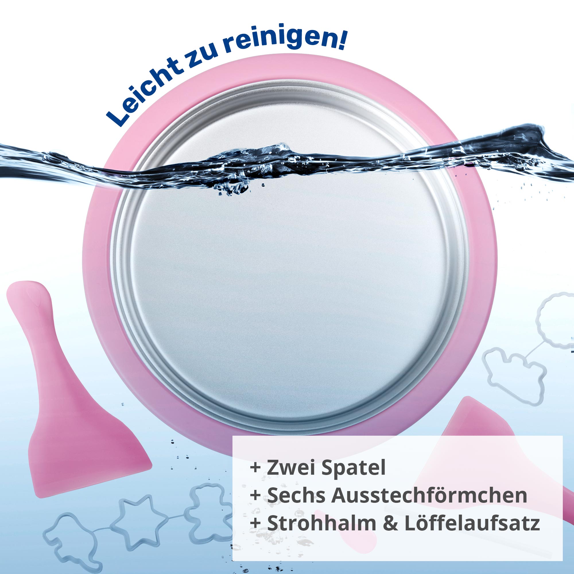 Eine Anleitung erklärt Schritt für Schritt, wie Du vorzugehen und was Du zu beachten hast. Der Lieferumfang besteht neben der Eismaschine, zwei Scharbern, Anleitung und Rezepten zudem aus einem Löffel und sechs Förmchen, um z. B. Sterne, Herzen, Bärchen und Elefanten als Eis zu verköstigen. Das macht es kindgerecht! Aber auch für erwachsene Feinschmecker ist das Set eine fantastische Idee. Du weißt ja, aus eigener Herstellung schmeckt es immer noch am leckersten.
