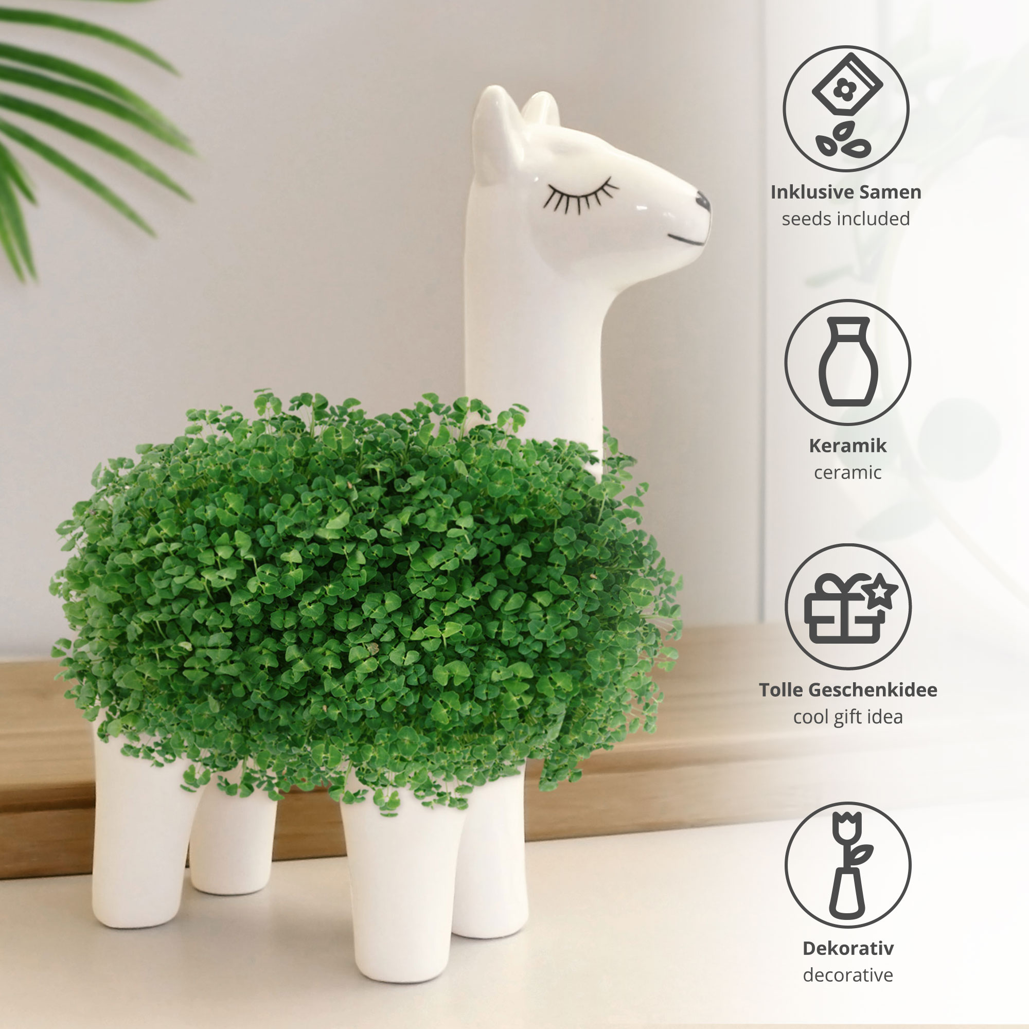 - Wiederverwendbares Lama Pflanzgefäß inklusive Chia Samen
