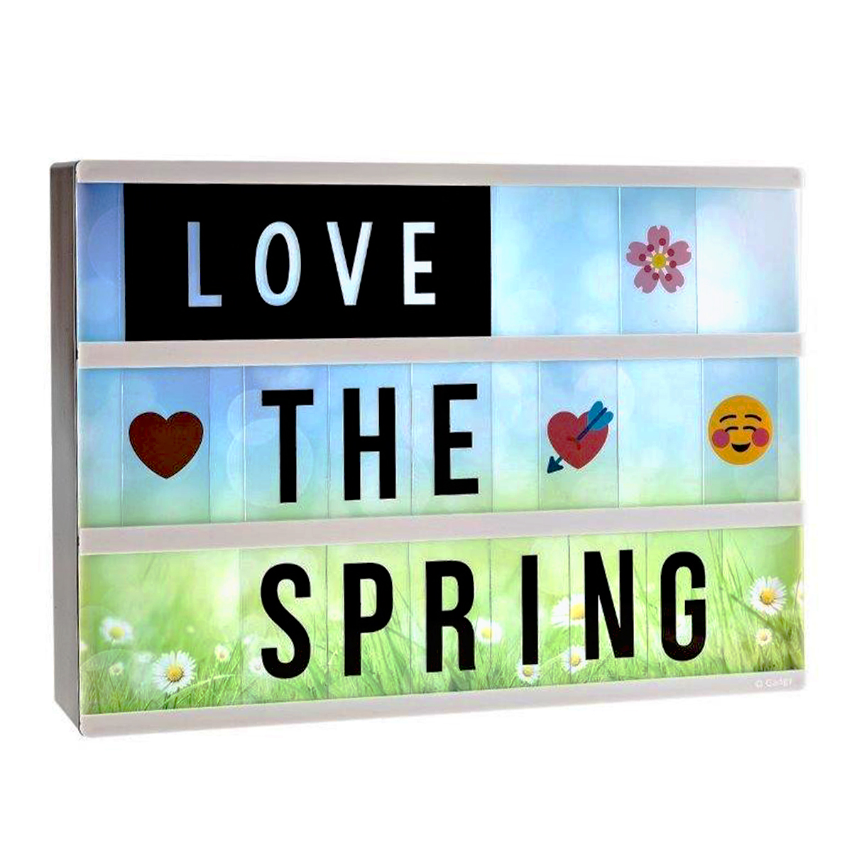 Mit dem Premium LED Lightbox Set ist für jeden Anspruch etwas dabei. Auf insgesamt drei Zeilen setzt Du Deine kreativen Ergüsse auf A4-Größe in Szene, ob im Wohnzimmer, im Arbeitszimmer, im Schaufenster, im Cafe, auf dem Bürotisch, zur nächsten Party oder auf der Hochzeit. Besonders kräftig kommt Dein Text und auch der Hintergrund bei Licht zur Geltung. Verwende die Lightbox wahlweise mit Batteriebetrieb oder via Netzstecker, um Deine leuchtenden Ideen erstrahlen zu lassen. Und erneuern kannst Du den Leuchtkasten immer wieder. So viele Möglichkeiten gab es noch nie!