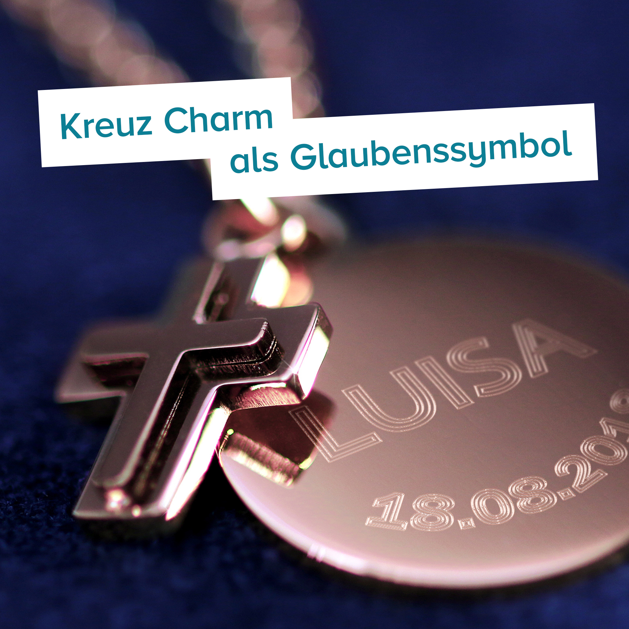 Mit Kreuzanhänger und Kreisanhänger samt individueller Gravur