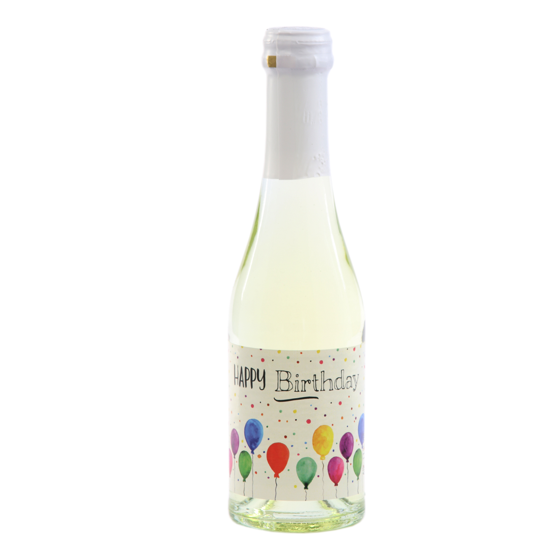Piccolo Sektflasche mit "Happy Birthday" Aufdruck auf Etiket und Verpackung