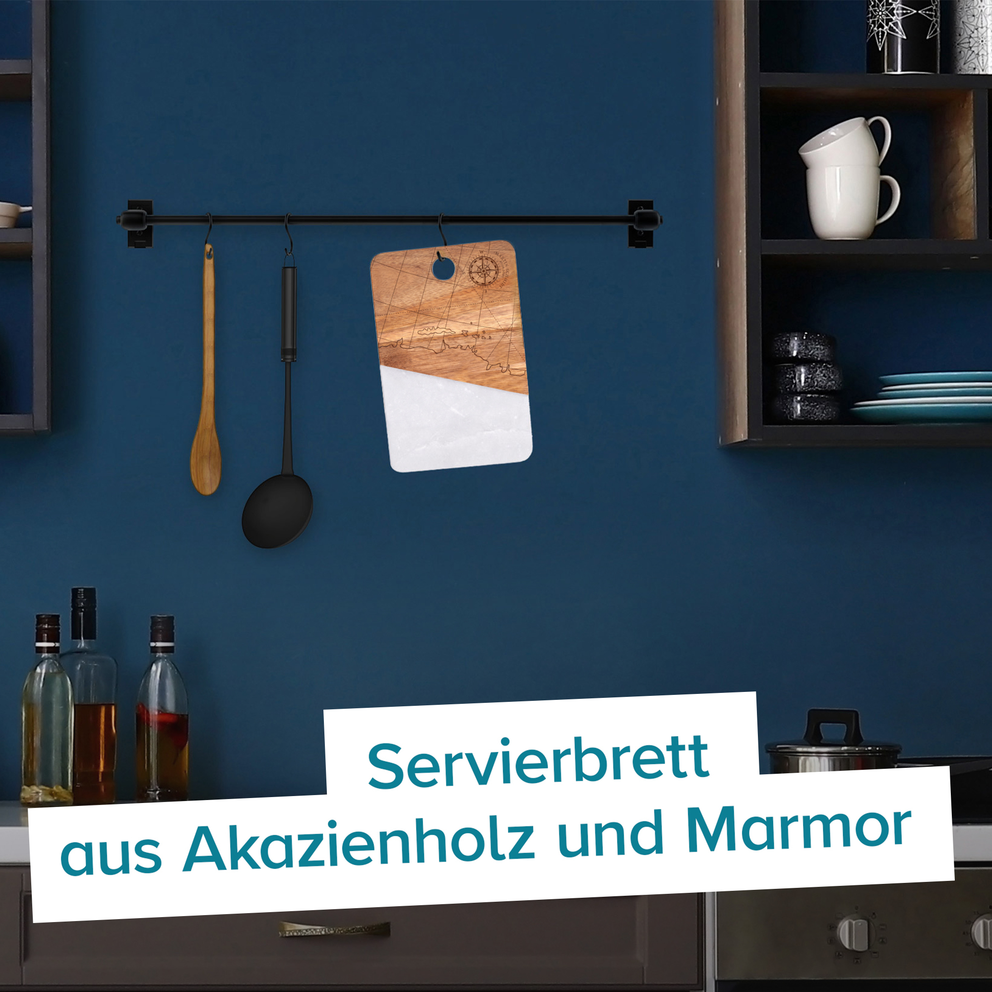 Was schenkt man einem Hobbykoch? Oder einer Hobbyköchin? Es gibt so einige kulinarische Präsente, die man jemanden schenken kann, der gerne kocht. Wenn Du aber nicht so recht weißt, was genau Du schenken sollst, dann möchten wir Dir einen heißen Tipp geben: Über das schicke Servierbrett Akazie und Marmor mit Gravur - Kompass freut sich jeder, der ab und zu mal schnippeln muss! Und selbst wenn es nicht zum Schneiden von Lebensmitteln benötigt wird, zieht es aufgrund seiner schönen Optik unweigerlich Blicke auf sich und stellt somit auch ein schönes Deko-Element in jeder Küche dar!