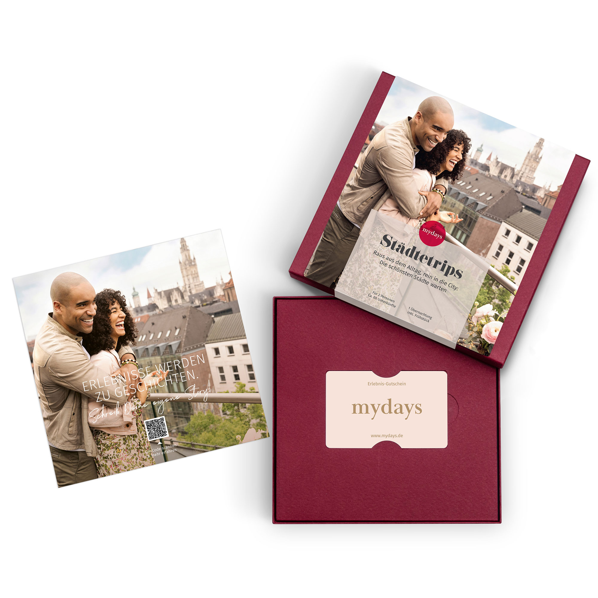 Der Städtetrips Gutschein ist damit das perfekte Geschenk für alle, die gerne neue Städte entdecken und unvergessliche Momente erleben möchten. Der Erlebnisgutschein beinhaltet eine Übernachtung für zwei Personen und kann innerhalb von 3 Jahren eingelöst werden. Wählt aus einer großen Auswahl eure Wunschstadt und genießt ein traumhaftes Hotel inklusive Frühstück. Ob ein Wochenende oder einfach zwischendurch: Dieser Kurzurlaub gehört nur euch!